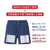 国内外の試合で使用するパンツのスポンサー権募集です。残りの半シーズンを通し着用いたします。