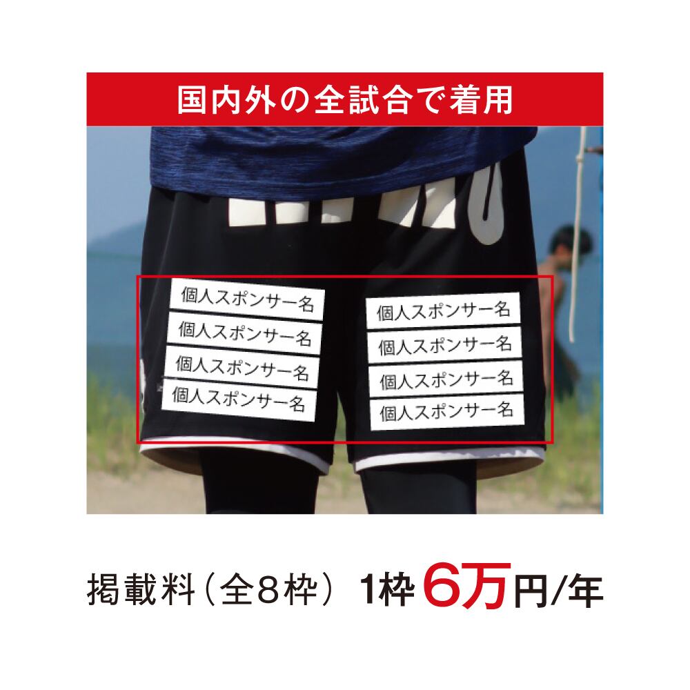 国内外の試合で使用するパンツのスポンサー権募集です。残りの半シーズン通し着用いたします。